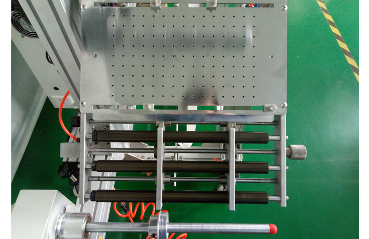 The pulling mechanism cooperates with the Schneider servo motor and the direct drive rubber roller to position the Mylar feeding position through the Keyence electric eye;
